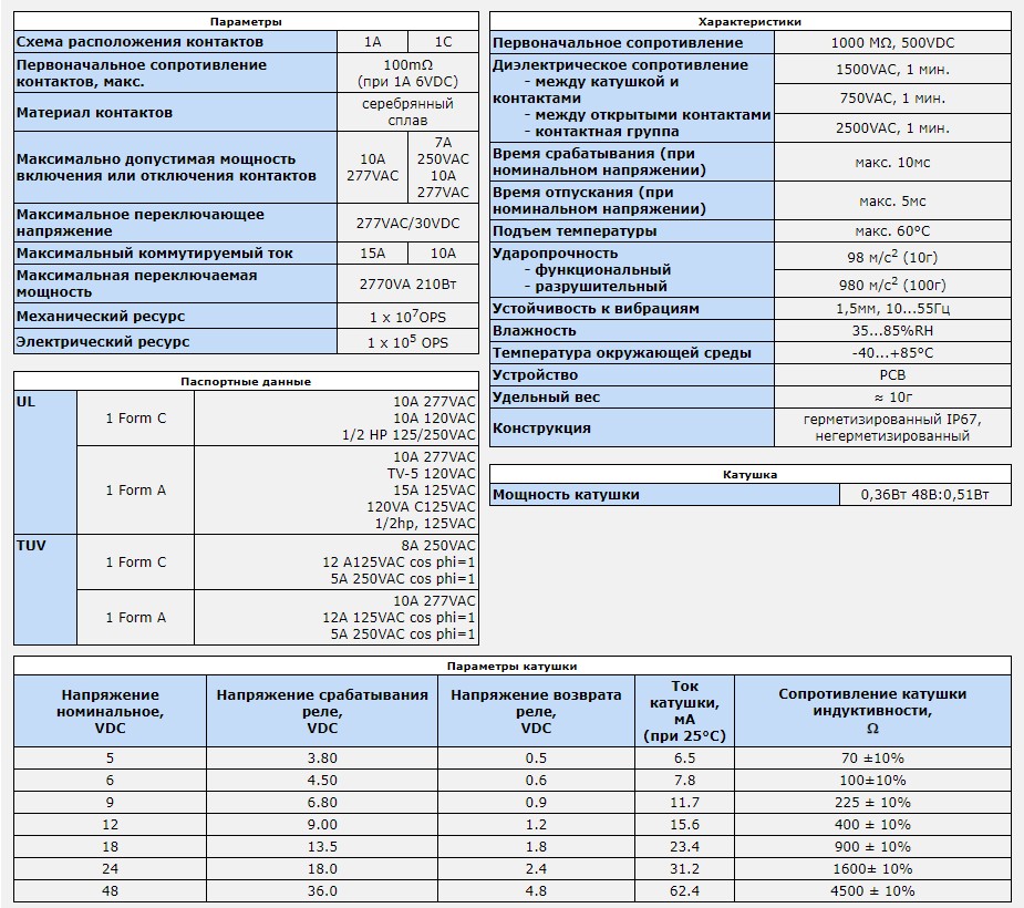 Характеристики Реле JQC-3FF-012-1HS 4 контакта
