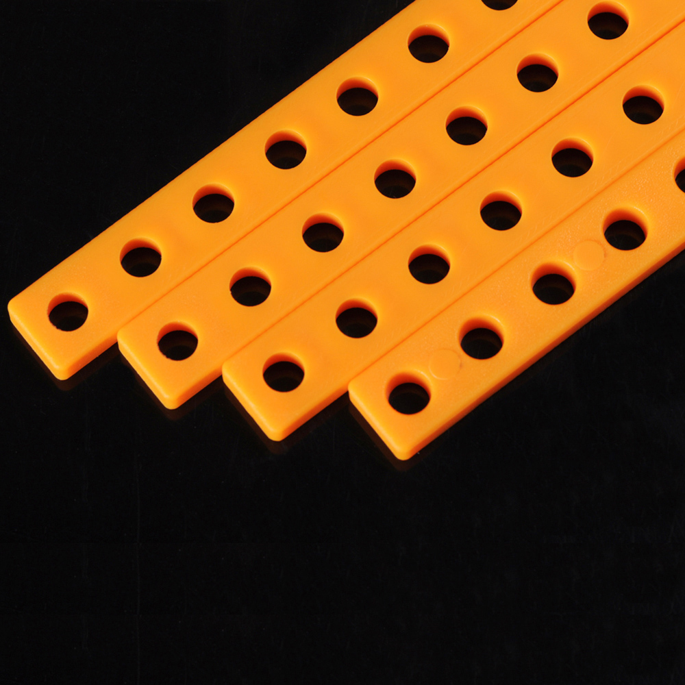 Прочная пластиковая пластина оранжевого цвета с одним рядом отверстий.
