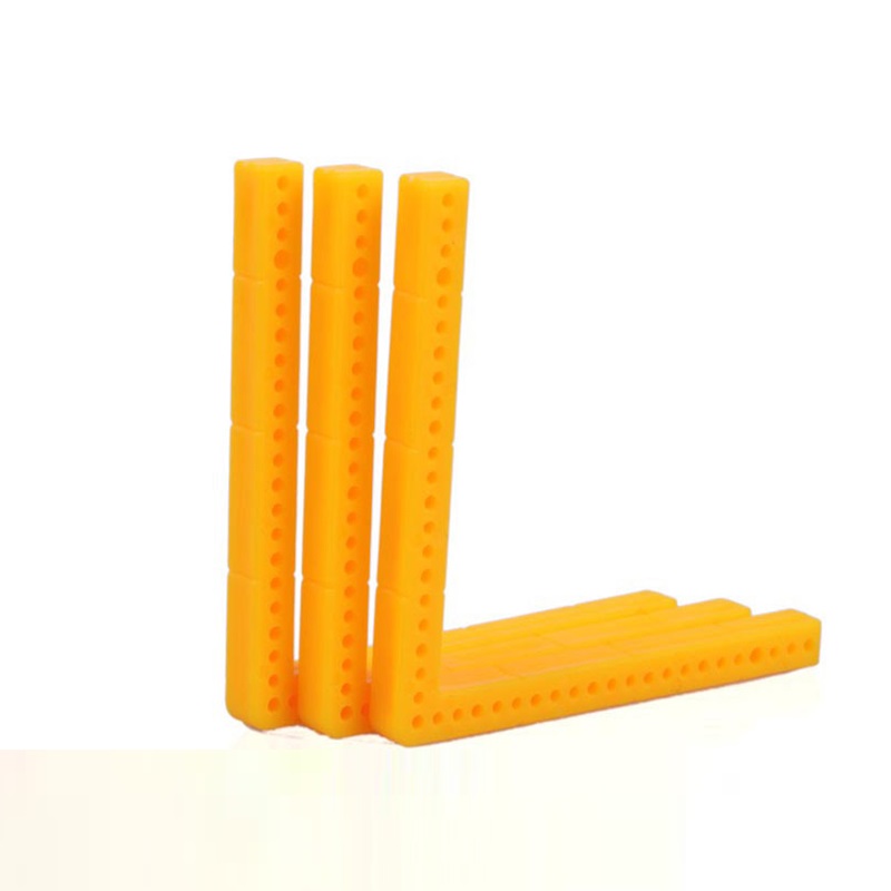 Прочная пластиковый уголок желтого цвета с отверстиями.