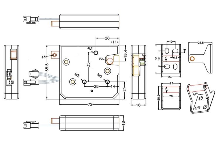 Замок имеет два провода: