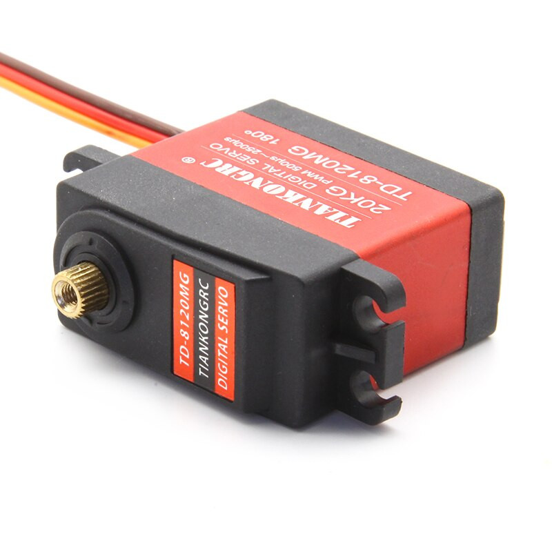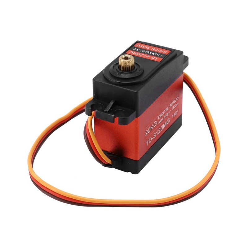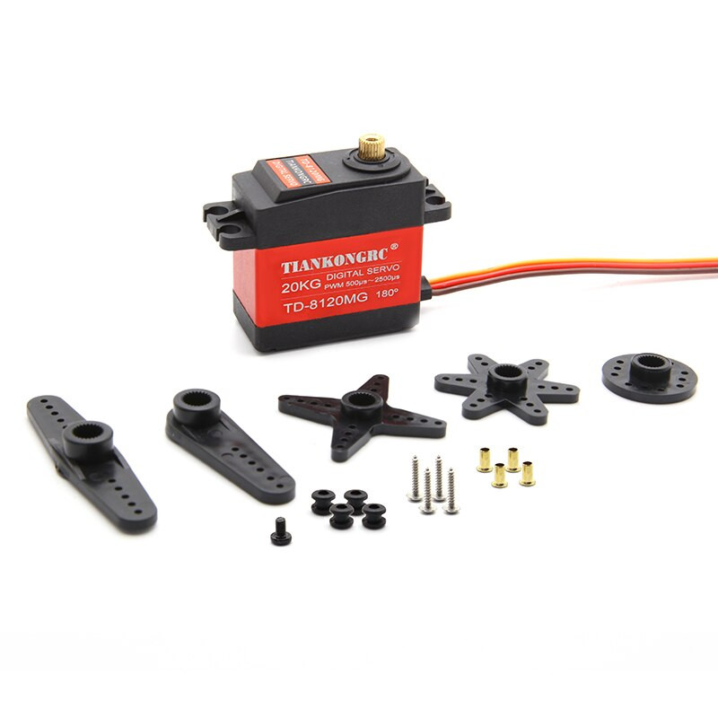 Мощный сервопривод с максимальным крутящим моментом до 21,8 кг·см подойдет для самых больших проектов, где требуется большая грузоподъемность. Металлический корпус позволяет отводить тепло наиболее эффективно по сравнению с пластиковыми моделями. Механизм сервопривода выполнен из металла (меди и аллюминия). В комплекте с сервоприводом идет комплект крепежа и пластиковых качелек. Для работы с большими нагрузками используйте металлическое колесо или колено для сервопривода.
