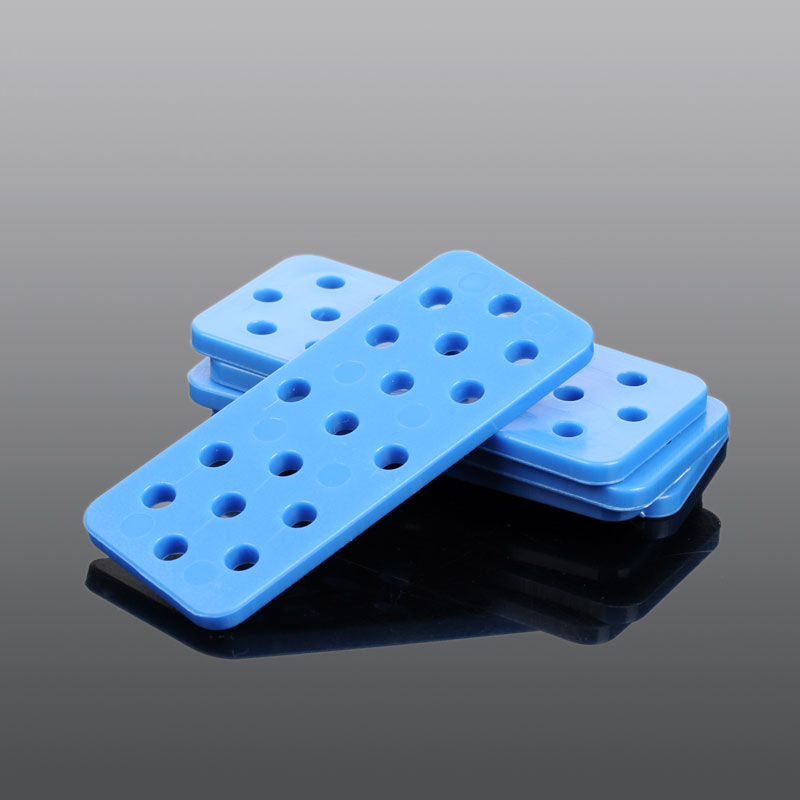 Прочная пластиковая пластина синего цвета с тремя рядами отверстий.