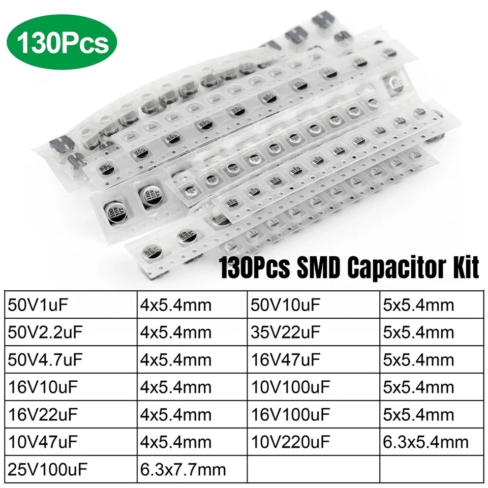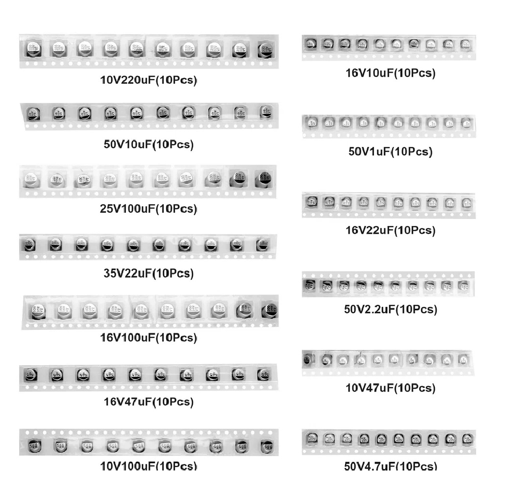 Характеристики Набор электролитических SMD конденсаторов 130 шт