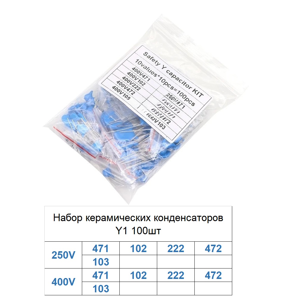 250V 400V 471 102 222 472 103 10 видов по 10 штук в каждом