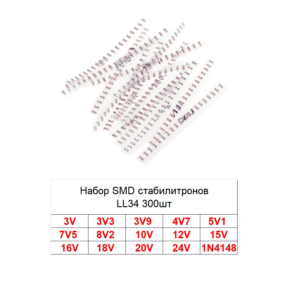 Характеристики Набор SMD стабилитронов LL34 300шт