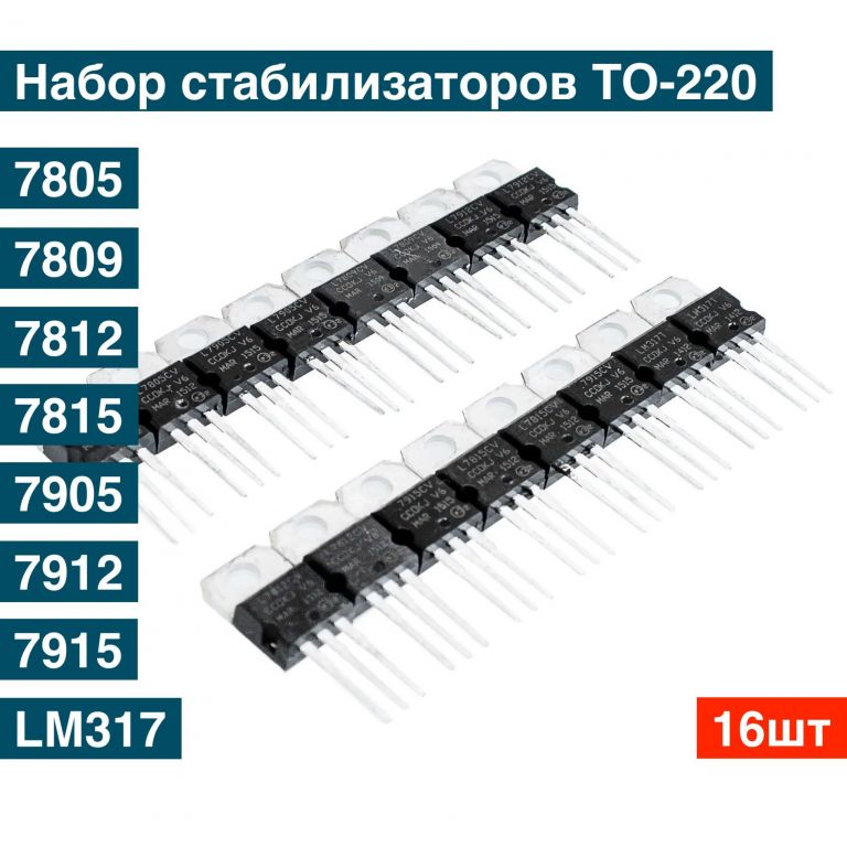 Характеристики Набор стабилизаторов напряжения TO-220 16шт