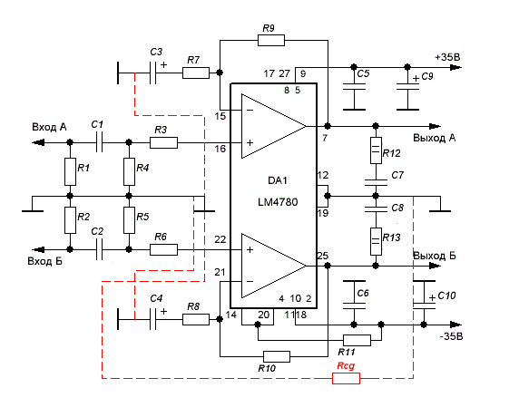 Напряжение питания, В: +/-35