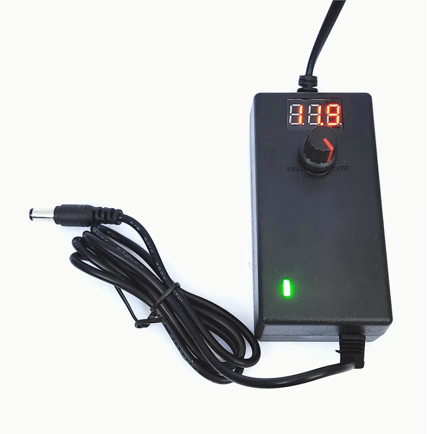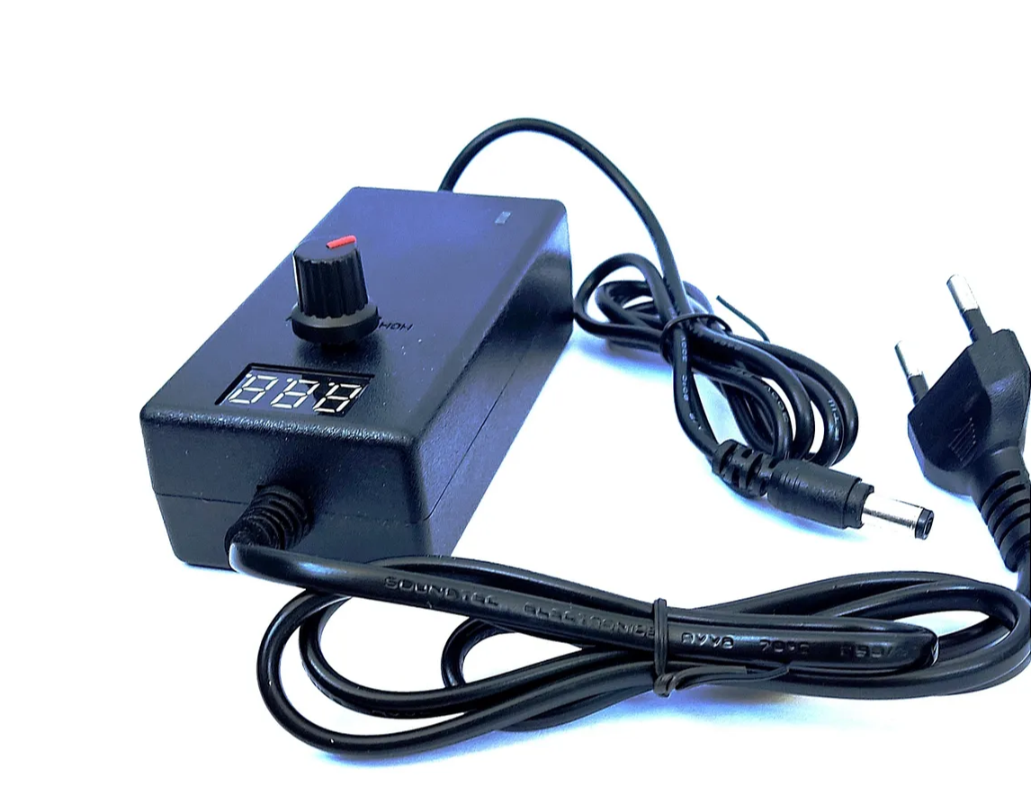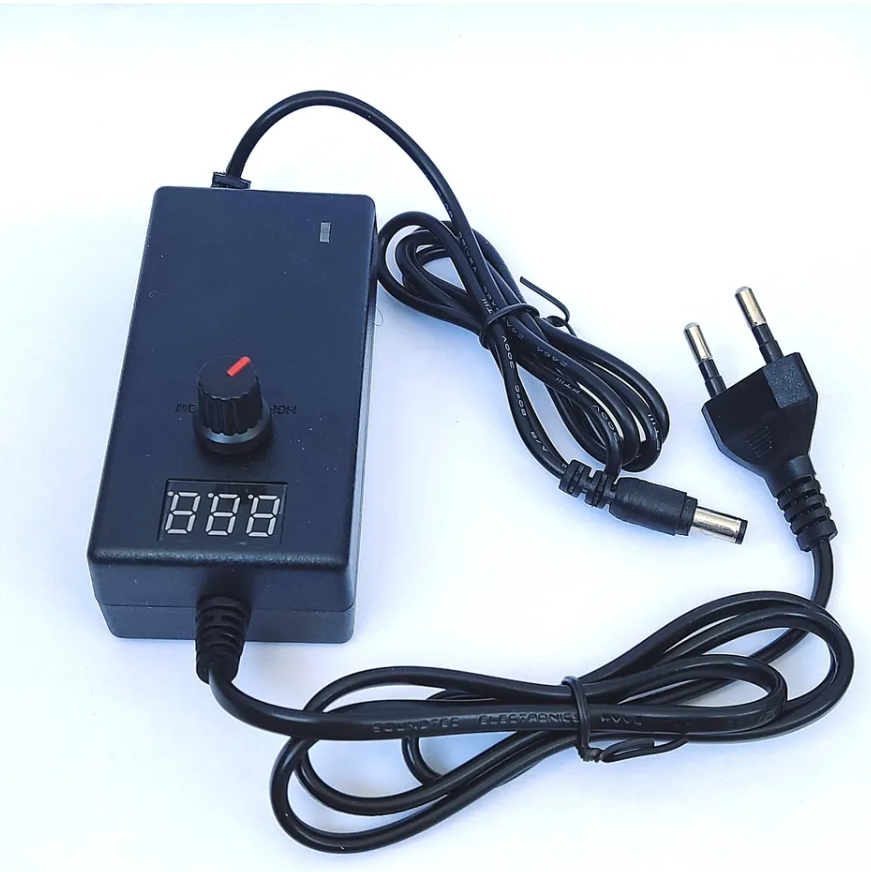 Универсальное устройство для питания бытовых электроприборов, оснащенное регулировкой напряжения. Регулятор и цифровой дисплей на корпусе адаптера позволяют вручную настроить выходное напряжение в пределах от 3 до 12В с шагом регулировки 0,1В. Максимальный выходной ток — 2А.